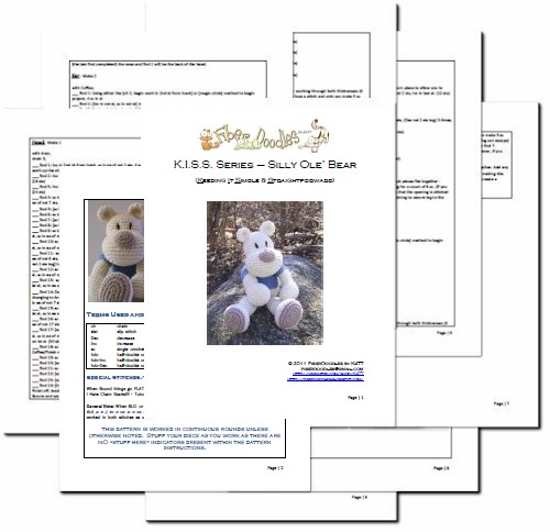 There have been many requests for the easily customizable 'familiar' looking bear from the K.I.S.S. Series. Finally, I have begun to rework the patterns as not to infringe upon any trademark characters. The K.I.S.S. Silly ole' Bear was the first to get his make-over.
